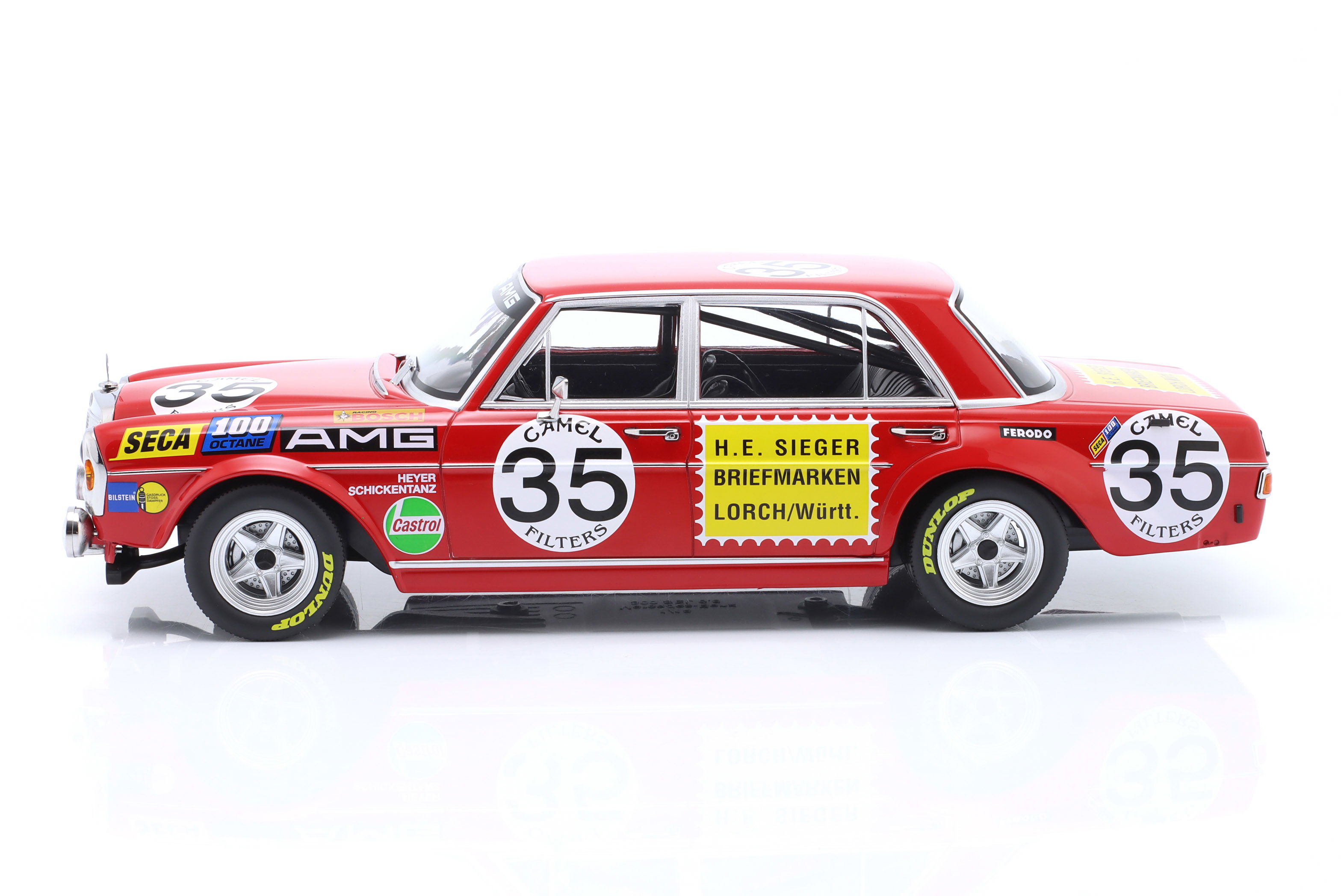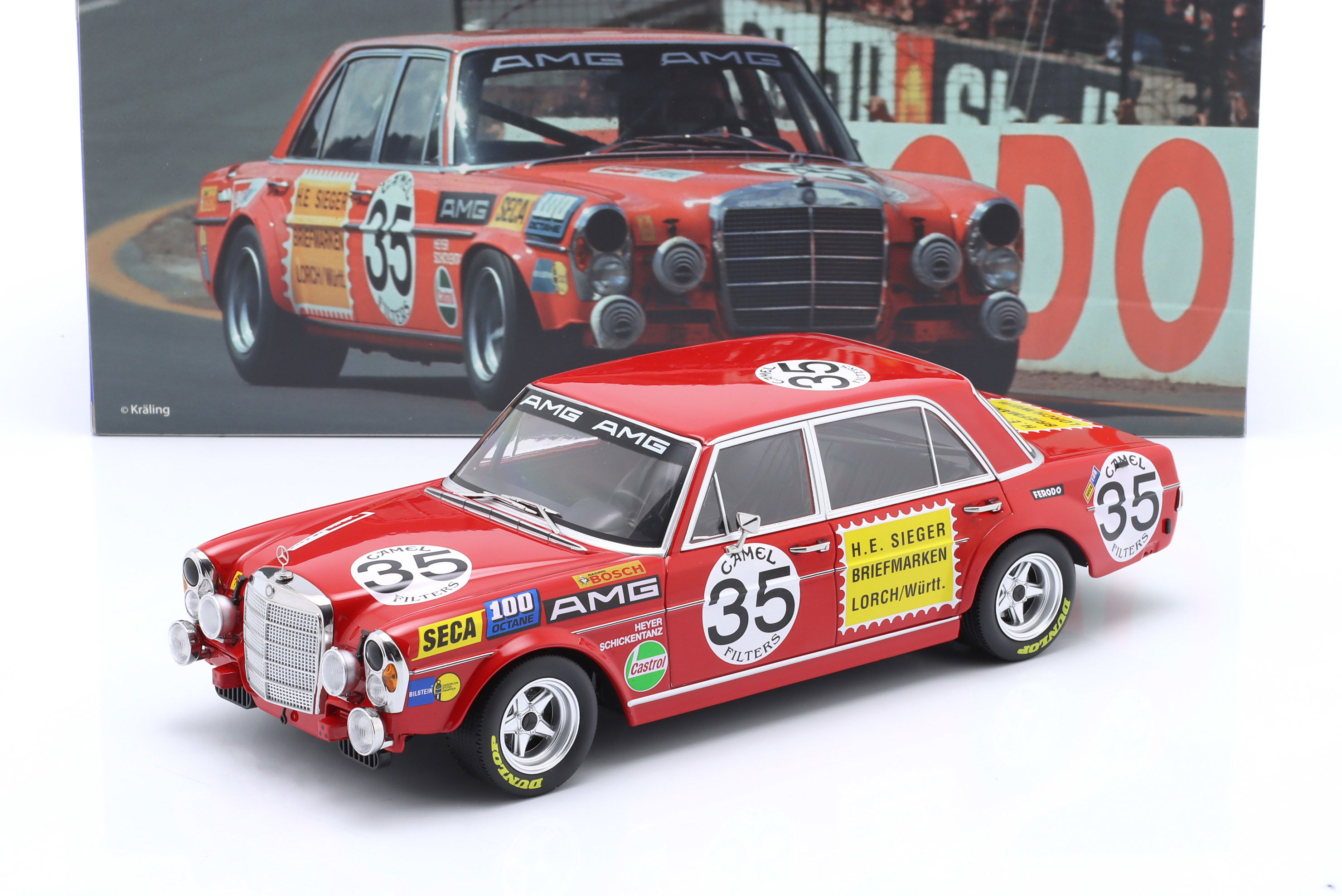 Every element has been crafted with intent. The aggressive stance, the unmistakable proportions of the 300 SEL, and the period-correct AMG motorsport livery all work together to deliver a collector-grade tribute.